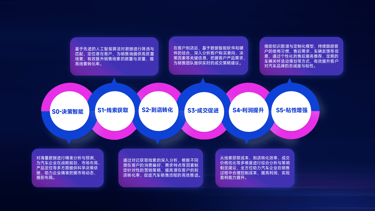 通过拓宽潜在客户来源、、优化线索分配并提高到店转化率,,以增强销售效率。。。同时,,,,利用线索数据不断优化分析模型,,,,有效提升转化率,,,扩大营销影响力。。。。